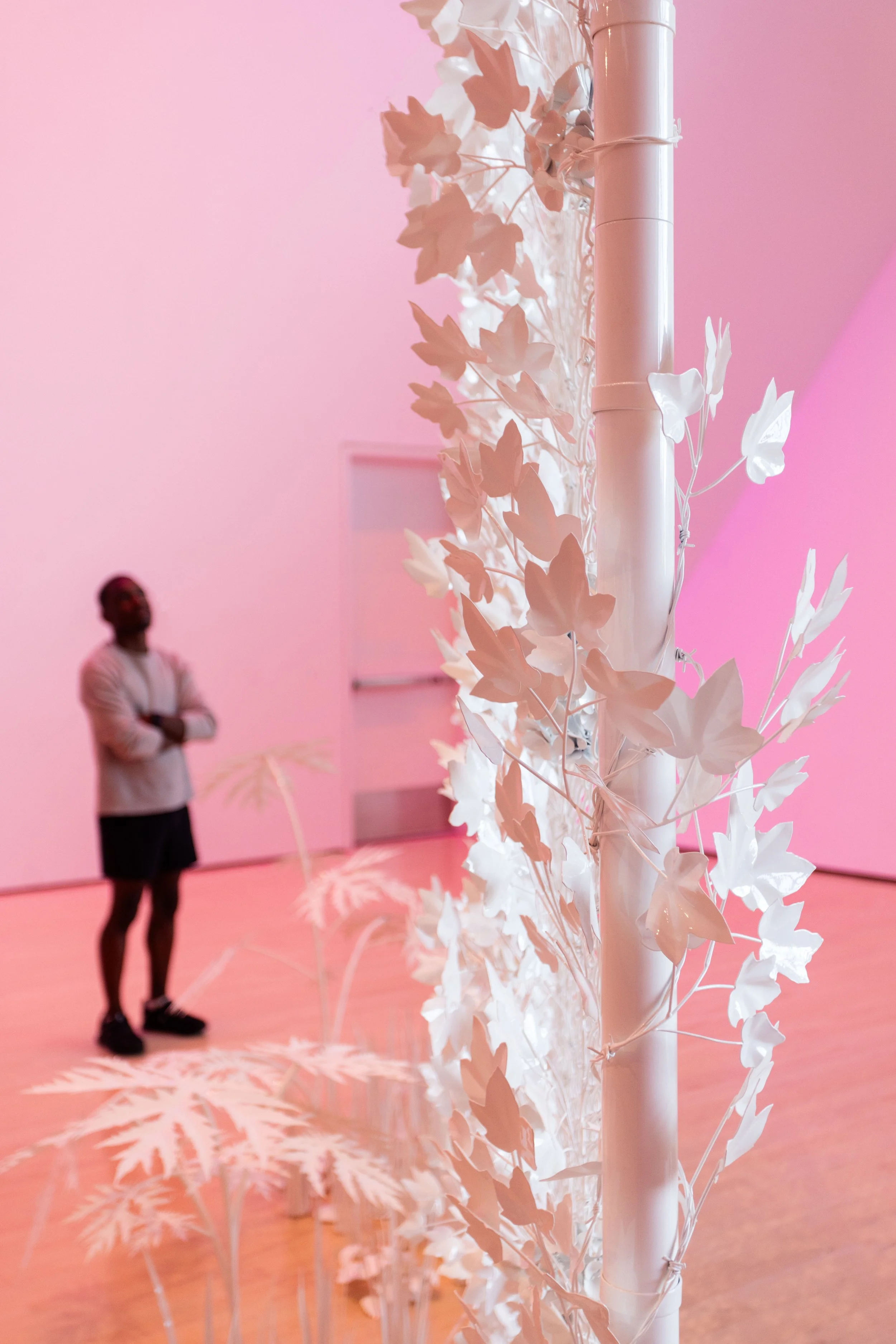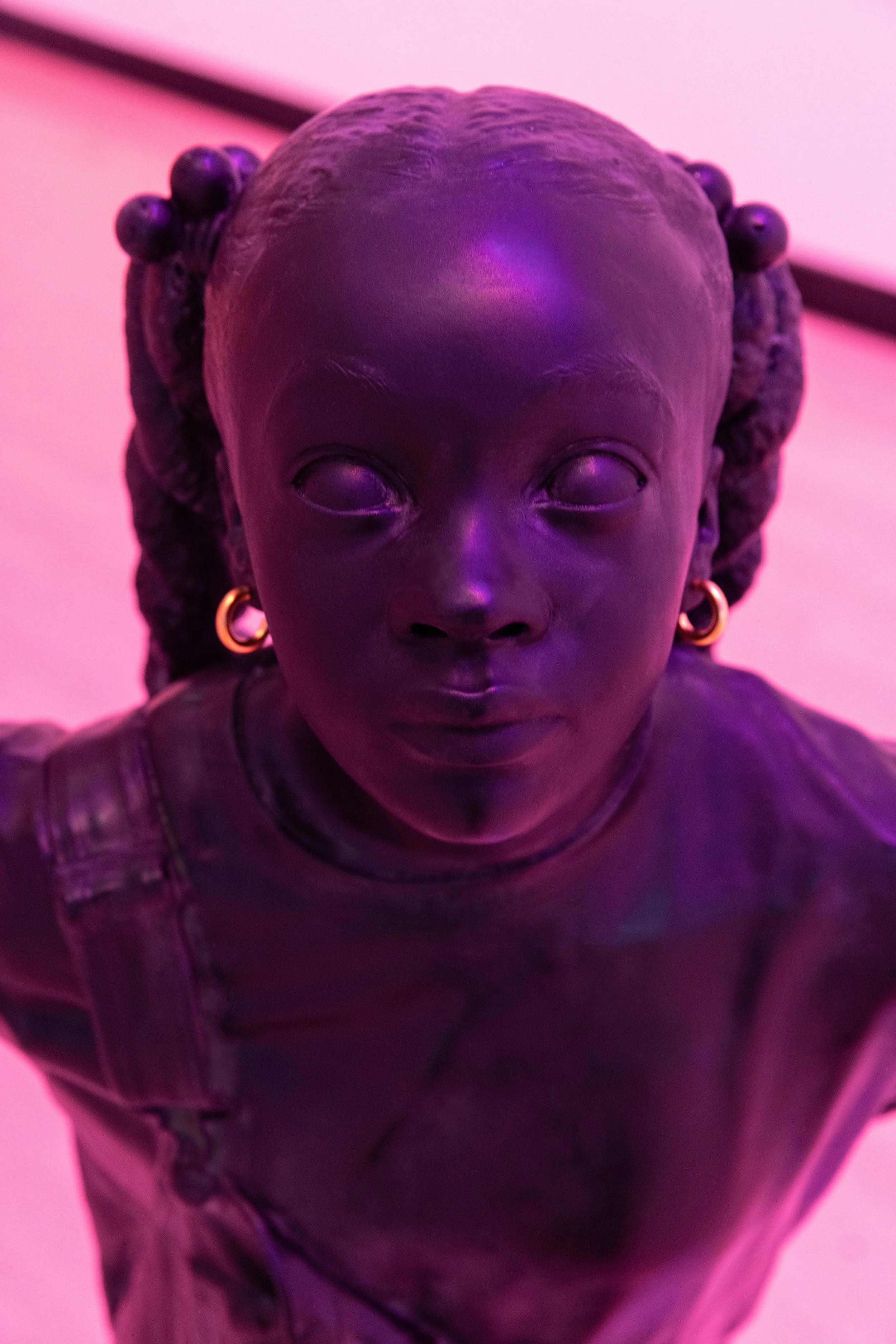 (Figure) Shea butter, charred bones, damar resin, wax, 21K gold earrings